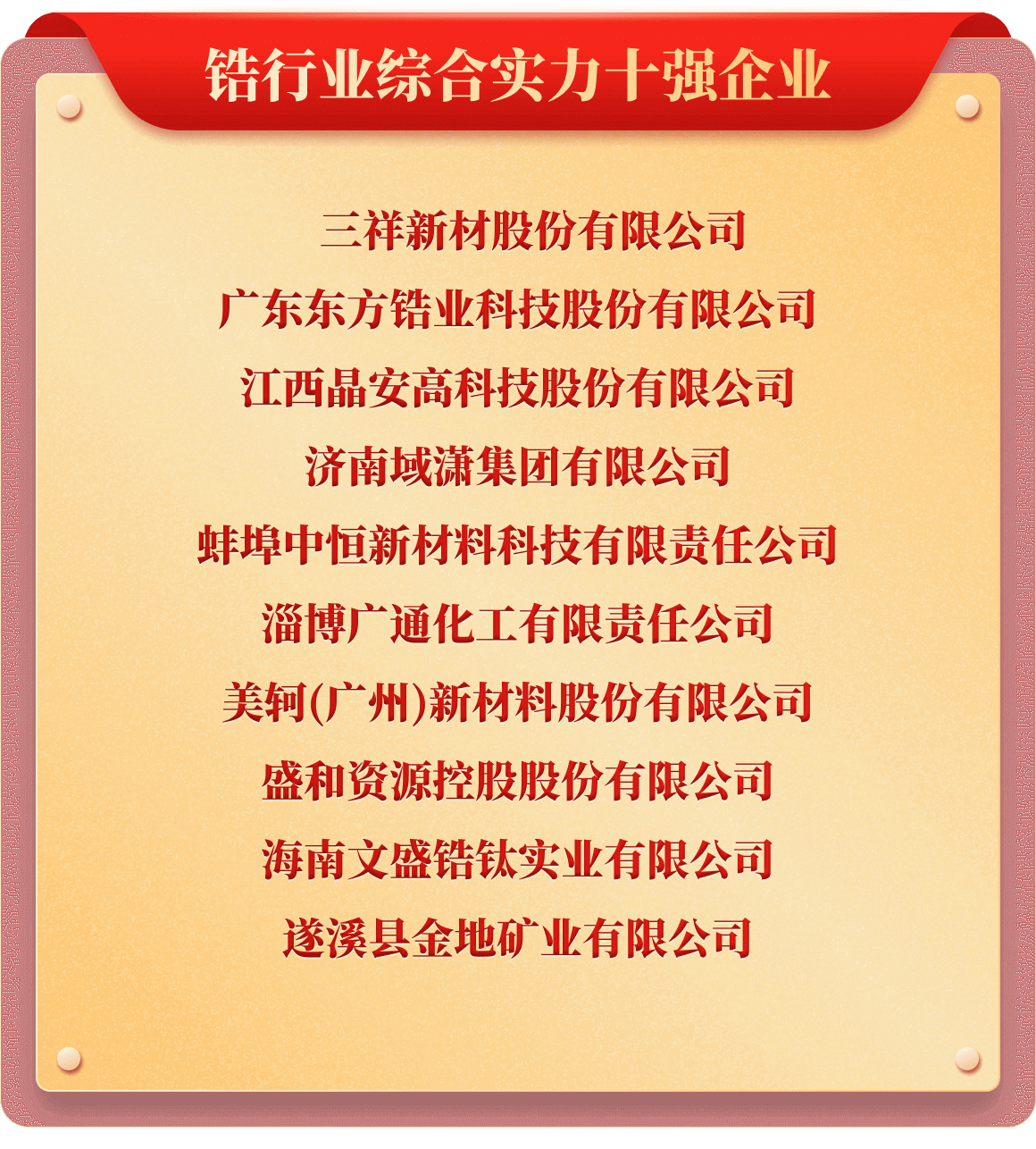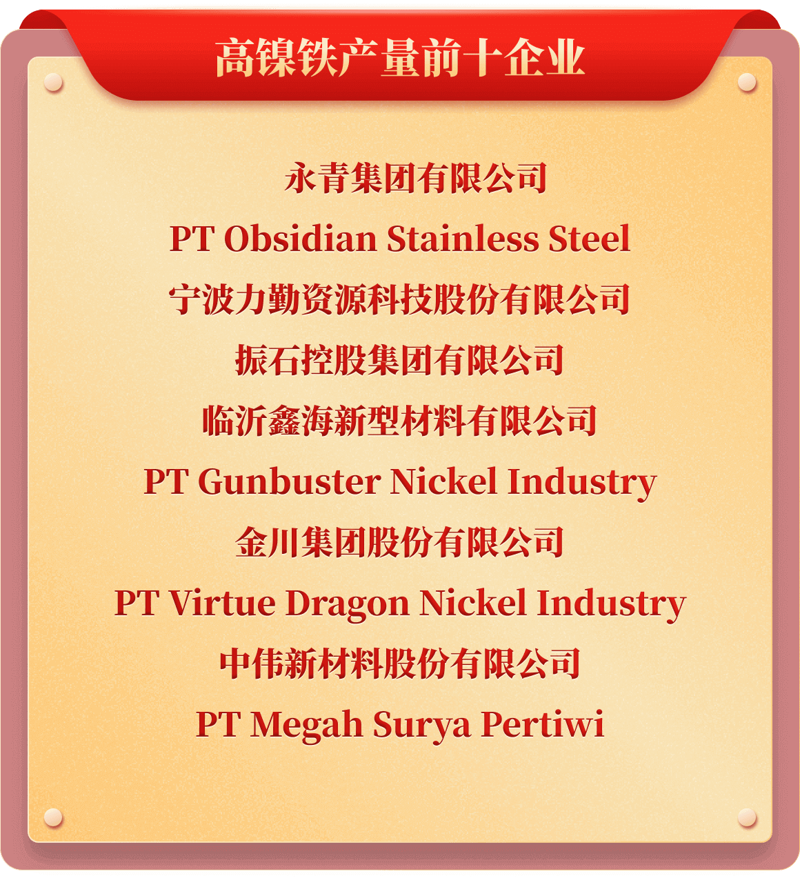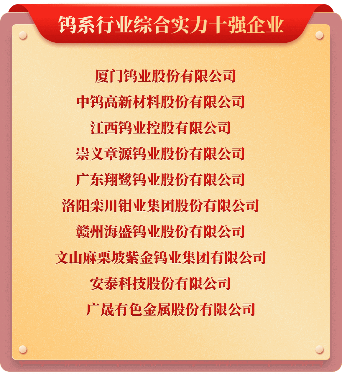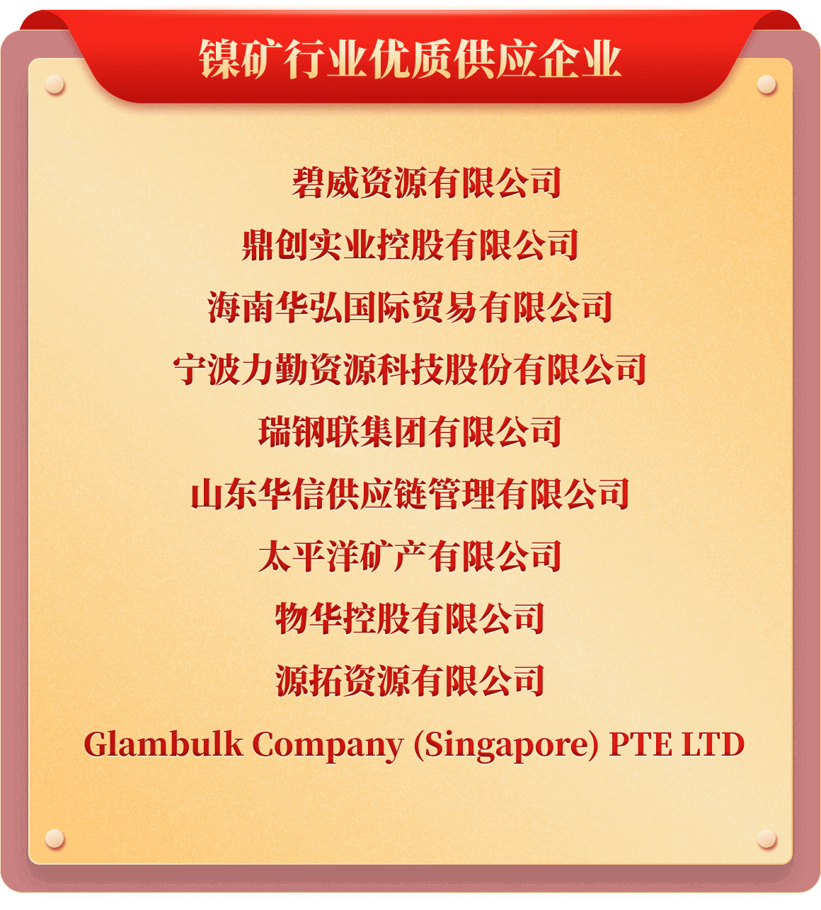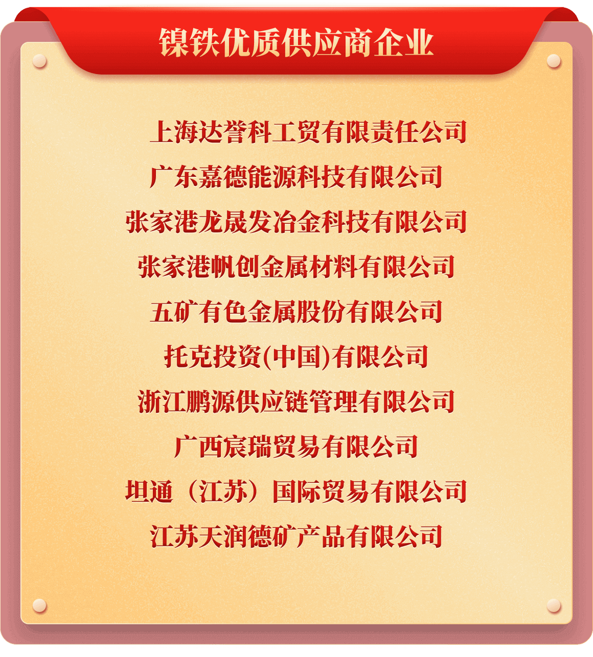 岁末年初,为树立行业榜样,推动行业持续健康发展,也为提升企业行业价值及市场影响力,铁合金在线发起了“2025年中国铁合金行业十强企业”评选活动。从企业实力、企业口碑、企业品牌、产品质量、发展规划、成本控制、经营环境等多维度考评,覆盖铁合金多类产品、海量企业,评选出“铬铁、铬矿、硅锰、锰矿、锰铁、电解锰、金属硅、硅铁、镍铁、镍矿、钒、钼铁、钼精矿、钨、钛、多元、稀土、稀土合金、金属镁”等20类综合实力十强企业。